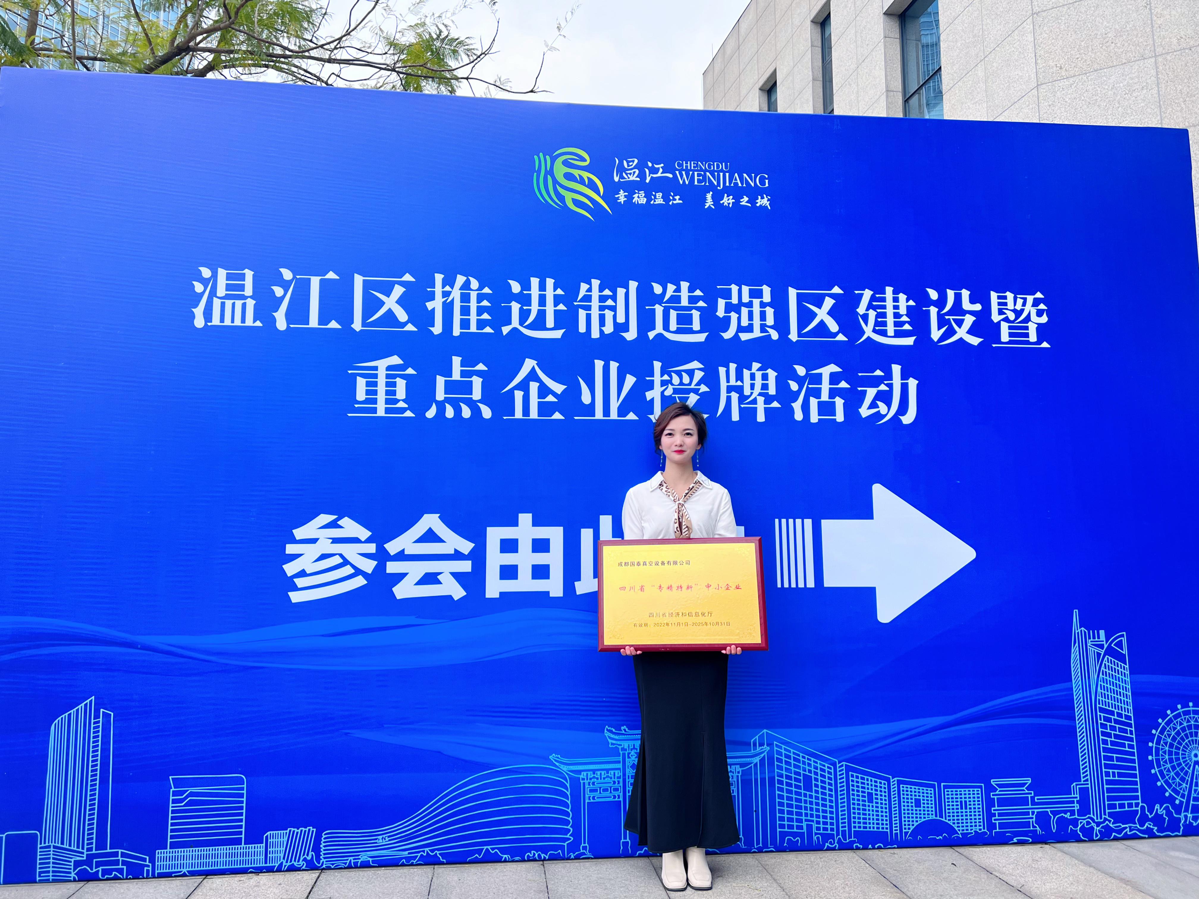 喜讯!成都凯发一触即发真空荣获四川省“专精特新”中小企业荣誉认证
