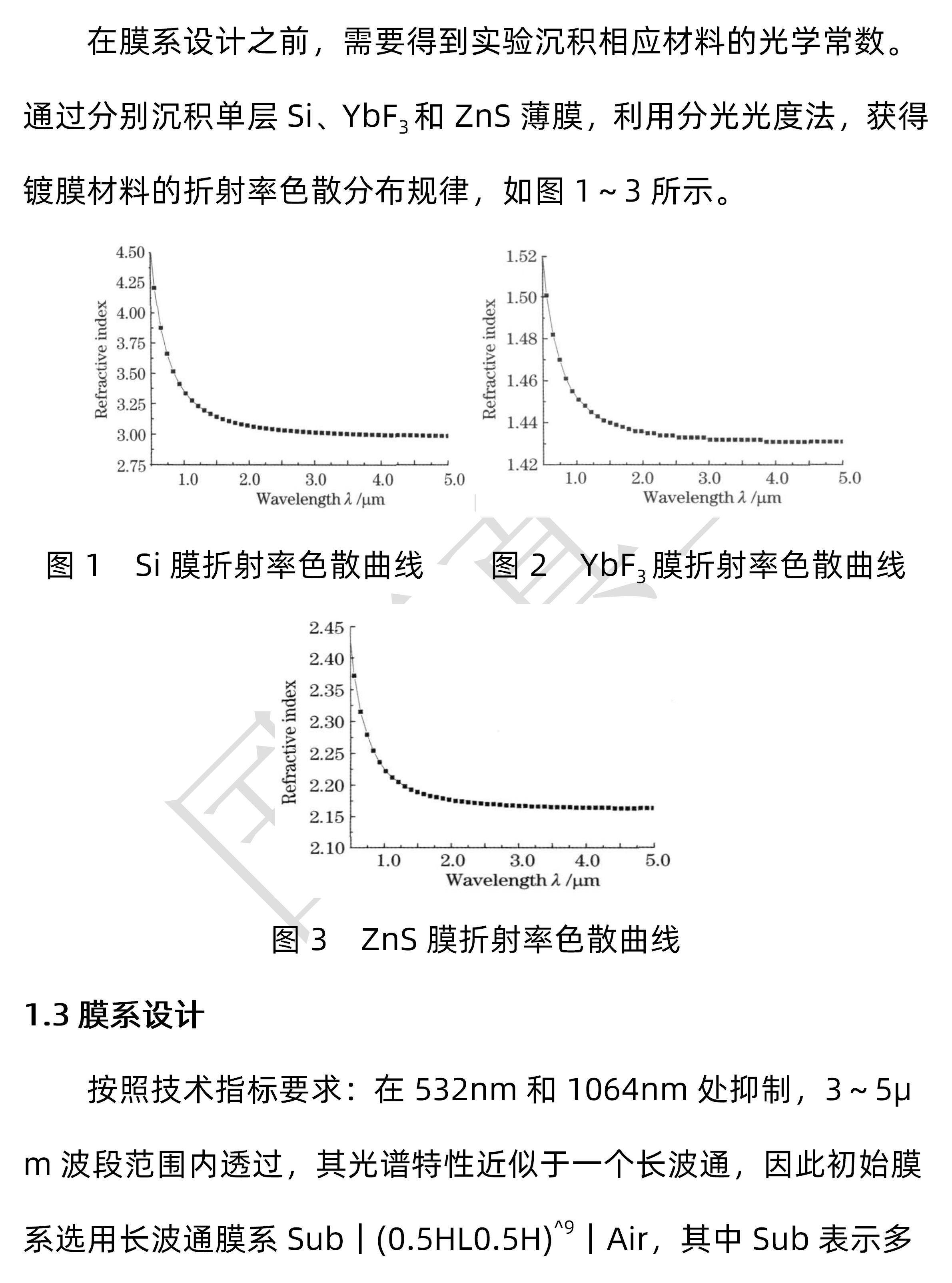 1.质料选择及膜系结构设计